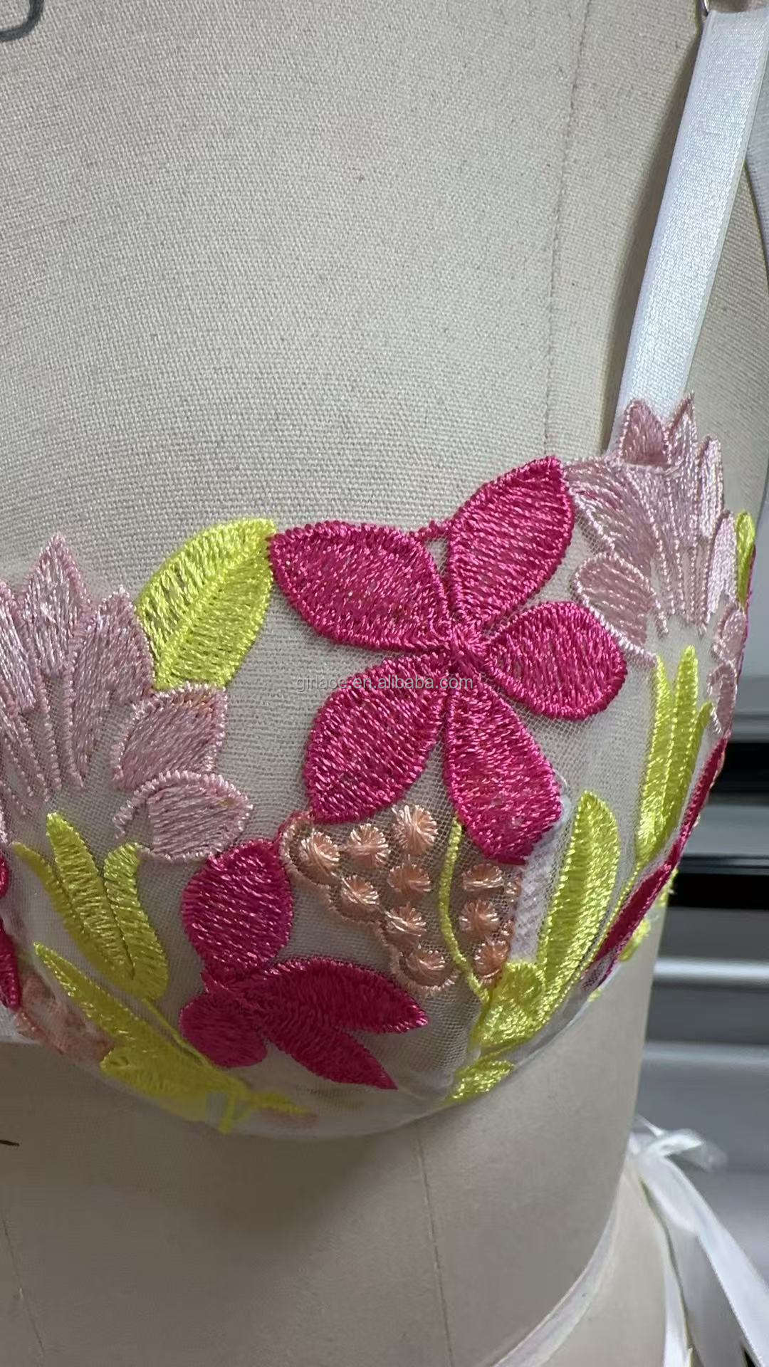 Women’s Cute Floral Embroidered Lace Lingerie Set Sexy White Underwire Jersey Fabric Comfortable Breathable Summer Underwear