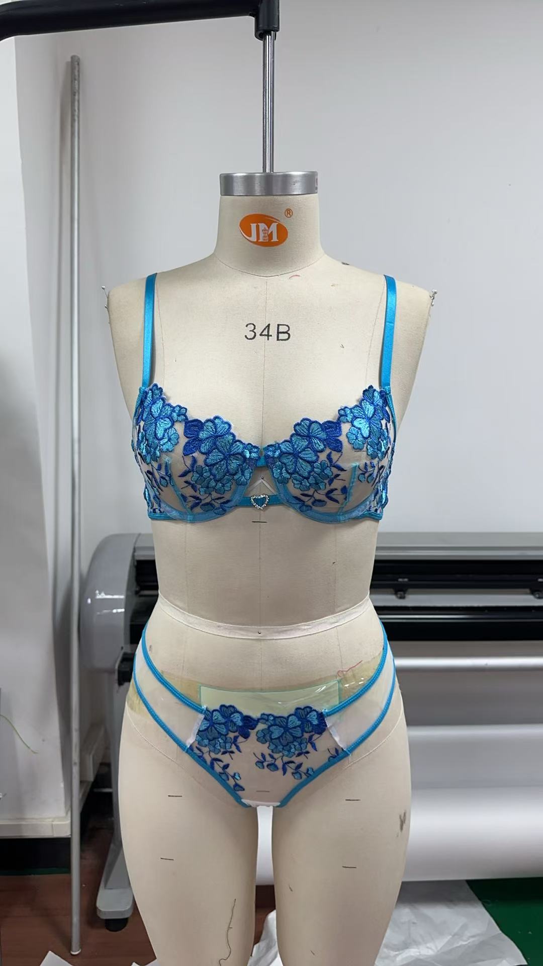 Women’s Sexy Lingerie Set Super Beautiful Pure Desire Mesh Bra Set XL Cup Size Logo Waist Solid Lace
