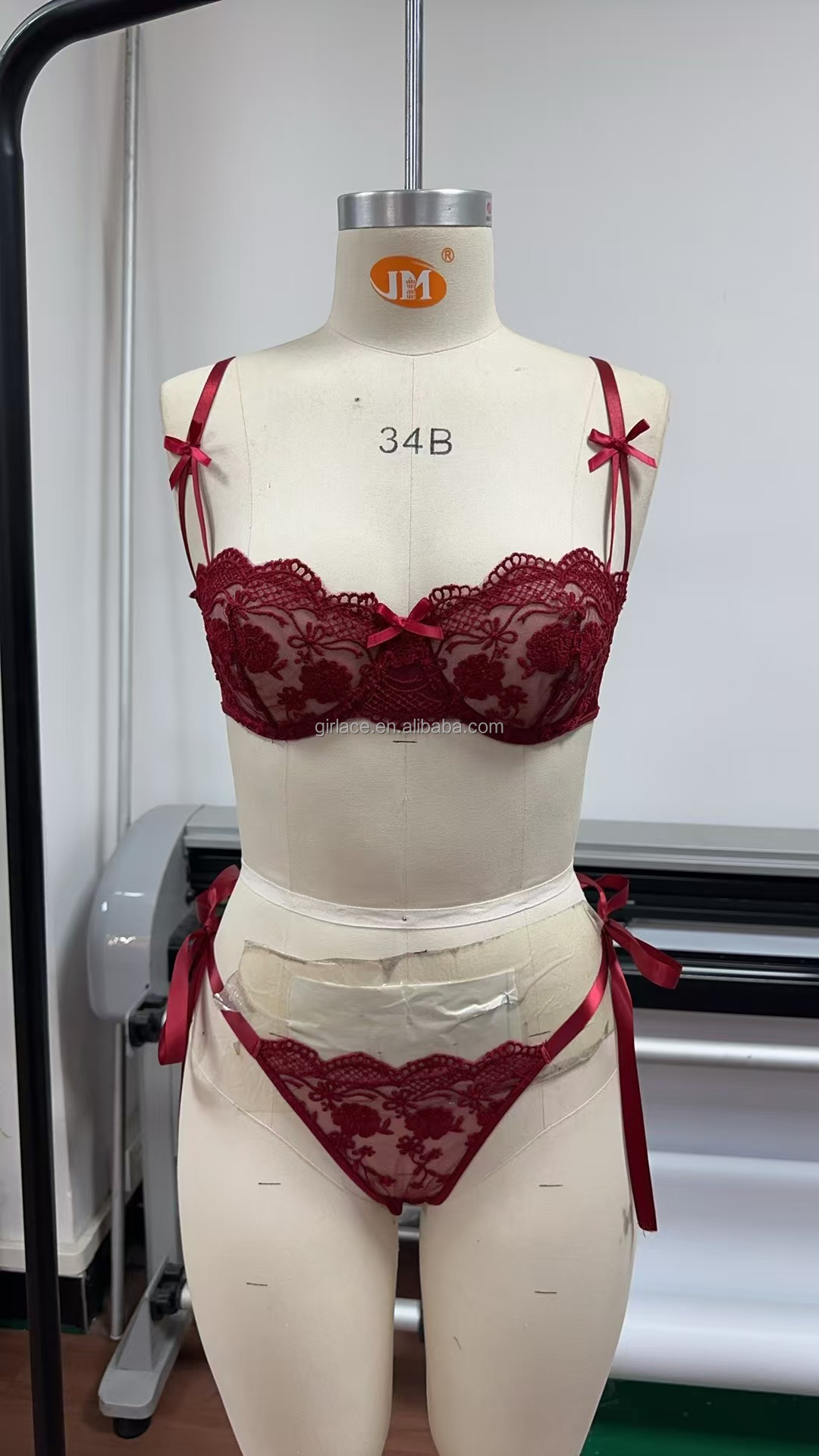 Women’s Sexy Lingerie Set with Underwire Bra Featuring Logo on Waist to Prevent Sagging